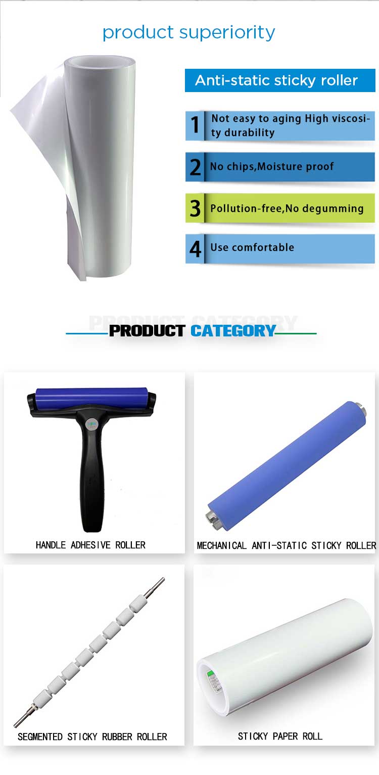 3.It can be used in conjunction with dustcollecting wheel, low viscosity rubber rollerand high viscosity rubber roller, highviscosity can remove low viscosity dust