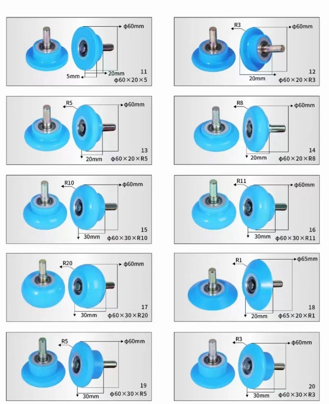 01 Φ50X60 11 Φ60X20X5 21 Φ60X30XR1