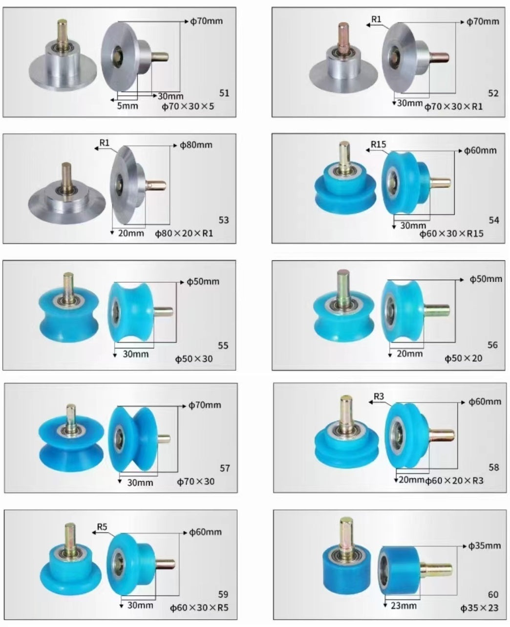40 Φ60X20X3(Nylon) 50 Φ60X20X5(Aluminum) 60 Φ35X23